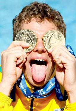 "Bater na frente é sempre bom. No mundial, quem chega primeiro é o melhor, é provado. Consegui fazer uma dobradinha que não imaginei que fosse conseguir, não", disse o nadador, de 22 anos.