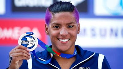Mas a nadadora já planeja aumentar esta exposição ainda este ano com uma sonhada medalha nos Jogos Olímpicos do Rio de Janeiro 2016, em que deve radicalizar mais uma vez o penteado.